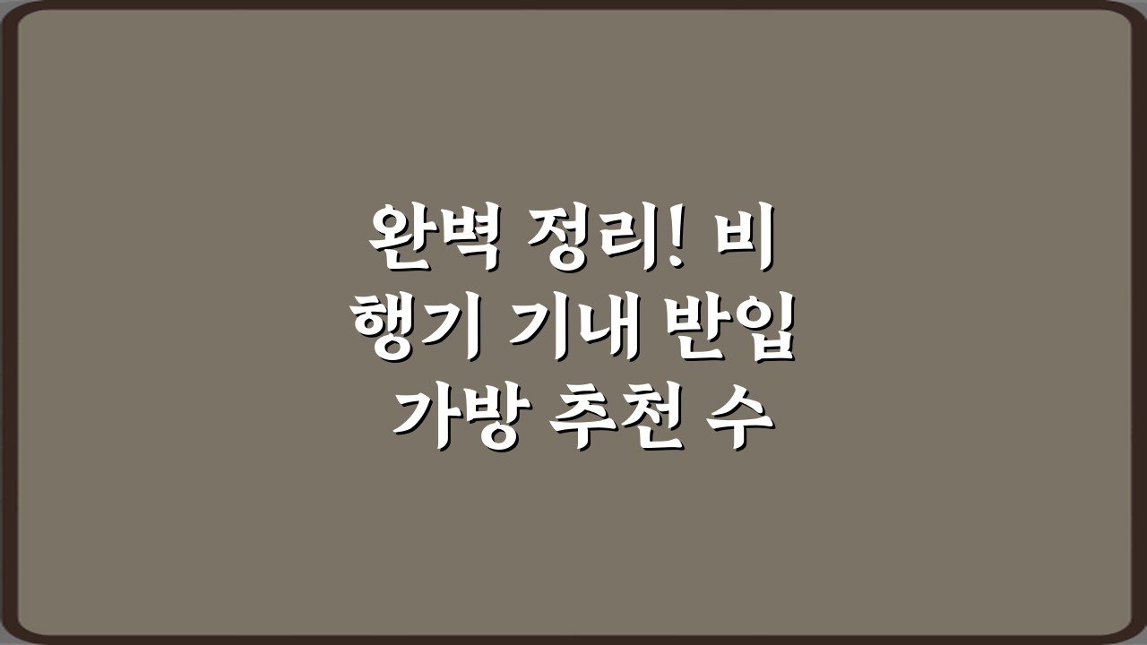 완벽 정리! 비행기 기내 반입 가방 추천과 7가지 수납 기준으로 스마트한 여행을 준비하세요. 효율적인 패킹 비법을 알려드립니다.
