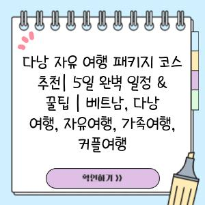 본 포스팅에서는 다낭 자유 여행의 핵심, 5일 완벽 일정과 여행 준비 꿀팁, 추천 맛집과 액티비티 정보를 담았으니, 다낭 여행 계획을 세우는 데 도움이 되시기를 바랍니다.