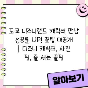 도쿄 디즈니랜드의 캐릭터 만남은 꿈결 같은 순간을 선사하지만, 인기 캐릭터와의 만남은 쉽지 않죠. 긴 대기 시간에 지쳐, 혹은 아예 만나지 못하고 돌아오는 경우도 많습니다. 하지만 걱정 마세요! 성공적인 캐릭터 만남을 위한 꿀팁을 알려드릴게요. 이 팁들을 활용하면 소중한 추억을 만들 수 있는 기회가 더욱 높아질 거예요.