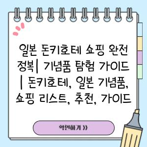 걱정 마세요! 이 글에서는 돈키호테 쇼핑 완전 정복을 위한 기념품 탐험 가이드를 제공합니다. 인기 상품 추천부터 꿀팁까지, 돈키호테 쇼핑을 100% 즐길 수 있는 모든 것을 알려드립니다.