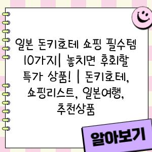 ✅ 돈키호테에서 꼭 사야 할 인기 상품이 궁금하다면? 지금 바로 확인해보세요!