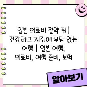 일본 의료비 절약 팁| 건강하고 지갑에 부담 없는 여행 | 일본 여행, 의료비, 여행 준비, 보험