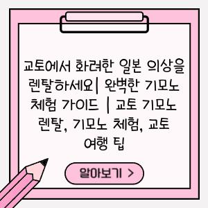 교토는 일본의 전통과 문화가 살아 숨 쉬는 도시로, 기모노를 입고 거리를 거닐며 아름다움을 만끽하는 것은 잊지 못할 경험입니다. 하지만 기모노를 직접 구매하기는 부담스럽고, 어디서 렌탈해야 할지 고민이시죠?