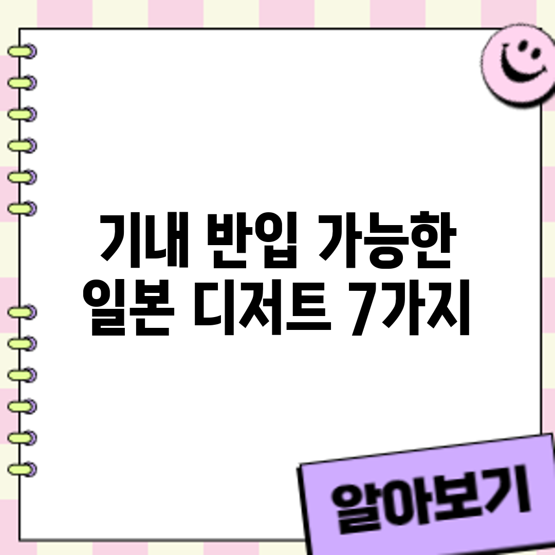 기내 반입 가능한 일본 디저트로는 과자, 초콜릿, 찹쌀떡 등이 있습니다. 이러한 품목은 보통 포장된 상태로 반입할 수 있으며, 유통기한이 적절한 제품을 선택하는 것이 좋습니다.