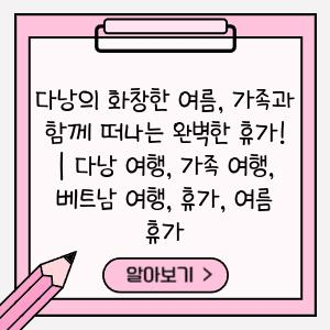 다낭 여행을 계획하는 가족들에게 도움이 될 만한 팁을 알려드리겠습니다.