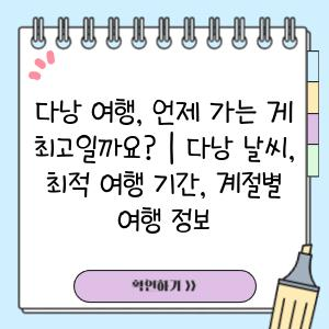 다낭 여행을 계획하고 계신다면, 본인의 여행 스타일에 맞는 최적의 시기를 선택하여 즐거운 여행을 만들어 보세요!