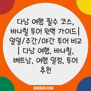 이 글에서는 다낭 여행 필수 코스인 바나힐 투어에 대한 완벽 가이드를 제공합니다. 일일 투어, 주간 투어, 야간 투어 각각의 장단점을 비교 분석하고, 투어 일정 및 추천 코스까지 알려드립니다. 또한, 바나힐을 더욱 알차게 즐길 수 있는 팁과 주의 사항도 함께 소개합니다.