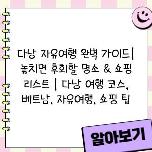 걱정 마세요! 이 가이드는 다낭 자유여행을 계획하는 당신을 위한 완벽한 지침서입니다. 다낭에서 놓치면 후회할 명소와 쇼핑 리스트, 알차게 여행할 수 있는 여행 코스, 그리고 꿀팁까지! 다낭 여행 준비, 이제 걱정 없이 떠나세요!