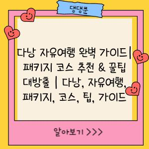 “다낭 자유여행을 계획하는 당신에게 완벽한 가이드가 될 것입니다. 패키지 코스 추천부터 꿀팁 대방출까지, 다낭 여행의 모든 것을 담았으니 걱정 말고 떠나세요!”