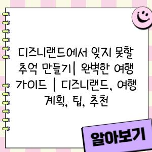 이제 더 이상 고민하지 마세요. 이 가이드와 함께 디즈니랜드에서 최고의 시간을 만들어 보세요!