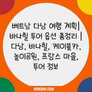 개별 자유여행부터 패키지 투어까지, 다양한 선택지를 비교 분석하고 가장 효율적인 투어 방법을 알려드립니다. 바나힐 케이블카 탑승부터 프랑스 마을 탐험, 놀이공원 정복까지, 놓치지 말아야 할 핵심 정보와 꿀팁까지 모두 공개합니다!