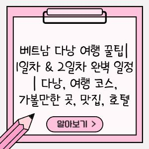아름다운 해변과 저렴한 물가, 맛있는 음식까지! 다낭은 동남아 여행의 매력을 모두 담고 있는 곳입니다. 하지만 막상 다낭 여행을 계획하려니 어디부터 어떻게 시작해야 할지 막막하시죠? 걱정 마세요! 이 글에서는 다낭 여행의 핵심을 콕콕 짚어 1일차부터 2일차까지 완벽한 여행 일정을 제시합니다.
