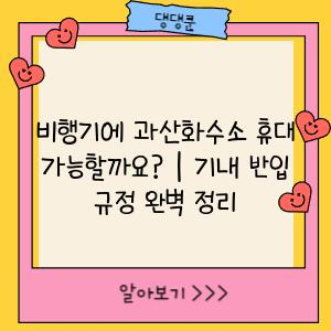 과산화수소는 위험 물질의 가능성이 있기 때문에 기내 반입 규정을 정확히 알고 지켜야 합니다. 항공사의 규정을 미리 확인하고, 불필요한 불편이나 문제를 피하기 위해 여행 전 충분한 정보를 숙지하시기 바랍니다. 안전하고 즐거운 여행 되세요!