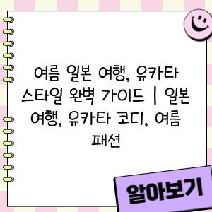 이 글에서는 여름 일본 여행에서 유카타를 완벽하게 소화하는 꿀팁들을 알려드립니다. 유카타 선택부터 코디, 액세서리까지! 유카타 스타일링 노하우를 익혀 일본 여행을 더욱 특별하게 만들어보세요.