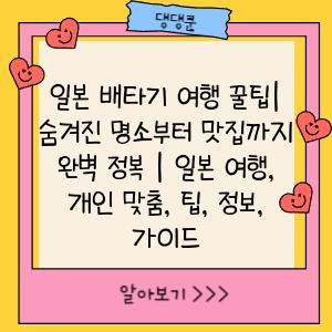 일본 배타기 여행 꿀팁 | 숨겨진 명소부터 맛집까지 완벽 정복 | 일본 여행, 개인 맞춤, 팁, 정보, 가이드