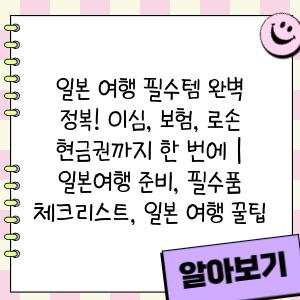 “일본 여행 필수템 완벽 정복! 이 글을 통해 꼼꼼하게 준비한 덕분에 여행 중 불편함 없이 즐거운 시간을 보냈어요!”
