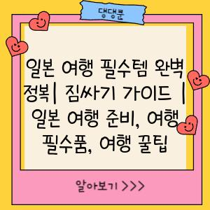 이 글에서는 일본 여행 필수템을 카테고리 별로 나누어 알려드리고, 짐 싸는 꿀팁까지 더해 완벽한 여행 준비를 돕겠습니다. 짐 싸는 스트레스는 줄이고, 여행의 설렘은 더욱 높여줄 핵심 정보들을 지금 바로 확인해 보세요.