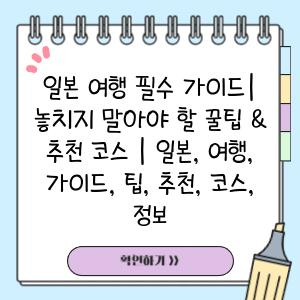 일본 여행 필수 가이드 | 놓치지 말아야 할 꿀팁 & 추천 코스 | 일본, 여행, 가이드, 팁, 추천, 코스, 정보
