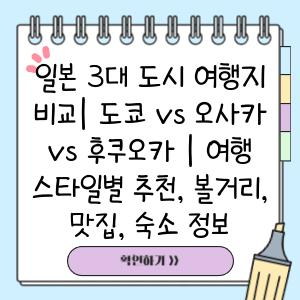 도쿄, 오사카, 후쿠오카는 각기 다른 매력을 가진 일본의 대표적인 도시입니다.