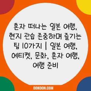 이 글에서는 기본적인 에티켓부터 실생활에서 유용한 정보까지, 혼자 여행하는 동안 꼭 알아두어야 할 핵심적인 내용을 담았습니다. 일본 문화에 대한 이해를 높이고, 매너있는 여행자로서 좋은 인상을 남기며 잊지 못할 추억을 만들어 보세요!