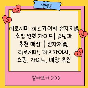 “히로시마 하츠카이치 전자제품 쇼핑, 성공적인 쇼핑을 위한 완벽 가이드! 지금 바로 활용하고 쇼핑의 달인이 되세요!”