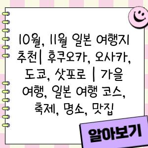 저희 블로그에서는 10월, 11월 일본 여행을 계획하는 여러분을 위해 추천 여행지, 여행 코스, 축제 정보, 명소, 맛집 등 다양한 정보를 제공합니다.