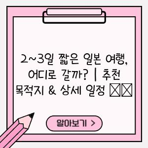 “2~3일 짧은 일본 여행을 계획 중이라면, 이 글에서 소개하는 추천 목적지와 상세 일정을 참고하여 알차고 즐거운 여행을 만들어 보세요!”