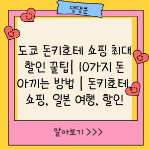 도쿄 돈키호테 쇼핑 최대 할인 꿀팁| 10가지 돈 아끼는 방법 | 돈키호테, 쇼핑, 일본 여행, 할인 도쿄 여행의 빼놓을 수 없는 즐거움, 바로 돈키호테 쇼핑입니다! 없는 게 없는 만물상 돈키호테에서 신나는 쇼핑을 하고 싶지만, 예산은 걱정되시죠? 걱정 마세요! 지금부터 돈키호테 쇼핑을 더욱 알차게 즐길 수 있는 10가지 꿀팁을 공개합니다. 1, 할인쿠폰 챙기기: 돈키호테 공식 홈페이지나 … Read more
