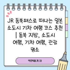 이 글에서는 JR 동북패스를 이용하여 떠날 수 있는 매력적인 소도시 여행 코스와 각 코스의 주요 관광 명소를 소개합니다. 숨겨진 보석 같은 소도시들을 발견하고, 일본의 진정한 아름다움을 느껴보세요. 지금 바로 JR 동북패스와 함께 잊지 못할 소도시 기차 여행을 떠나보세요!
