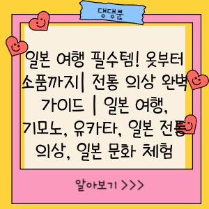 일본 여행 필수템! 옷부터 소품까지 | 전통 의상 완벽 가이드 | 일본 여행, 기모노, 유카타, 일본 전통 의상, 일본 문화 체험 잊지 못할 일본 여행을 계획하고 계신가요? 그렇다면 일본 전통 의상 체험은 빼놓을 수 없는 특별한 경험이 될 거예요! 기모노와 유카타는 단순한 옷을 넘어 일본 문화를 온전히 느낄 수 있는 특별한 매력을 지니고 있죠. 하지만 … Read more