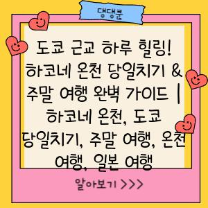 하코네 온천에서 깊어지는 일본 문화 체험| 장기 체류 가이드 | 하코네, 온천, 일본 문화, 여행, 체류 매혹적인 자연과 풍부한 문화 유산으로 유명한 하코네는 일본의 아름다움을 온전히 느끼고 싶은 여행자들에게 완벽한 장소입니다. 특히 하코네 온천은 몸과 마음을 재충전하며 일본 문화에 흠뻑 빠져들 수 있는 특별한 경험을 선사합니다. 이 글에서는 하코네 온천에서의 장기 체류를 통해 깊이 있는 … Read more